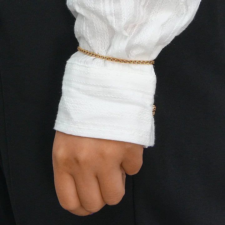 Modern and fashion-forward, this necklace features a sleek geometric stripe design crafted from durable stainless steel. Finished with 18K gold plating and electroplating for long-lasting shine, it’s lightweight, versatile, and perfect for elevating everyday or evening looks.